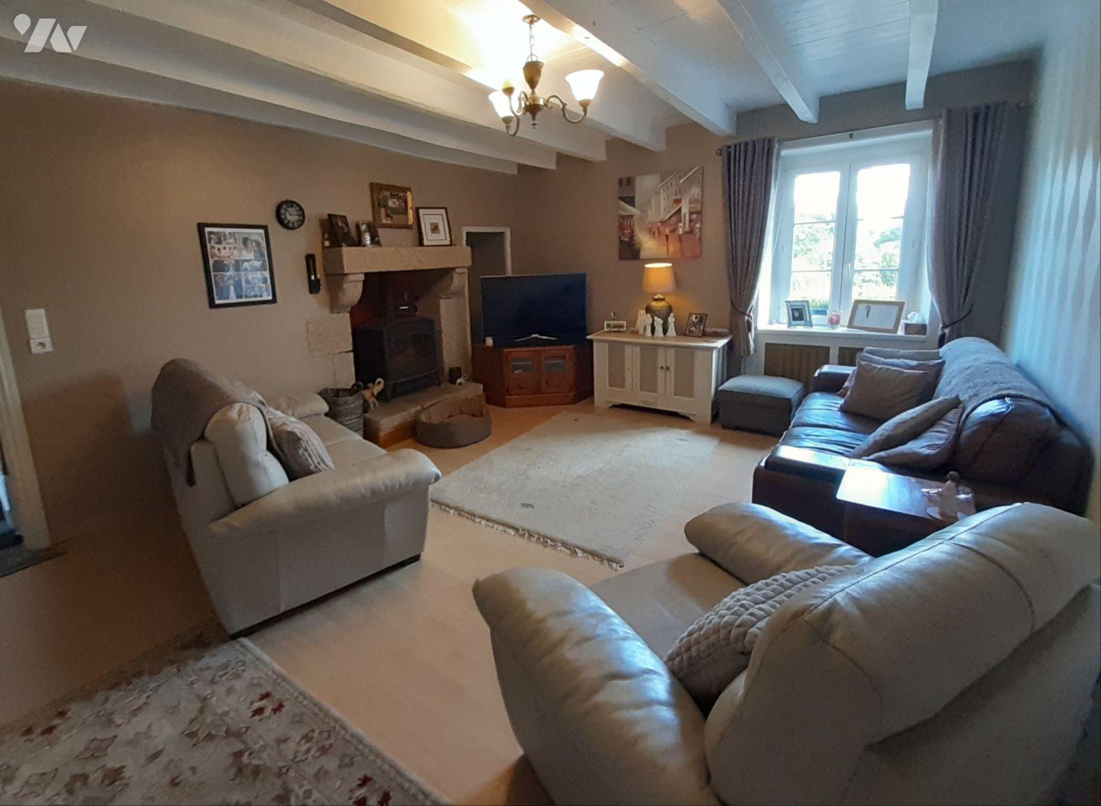 Salon lumineux avec poêle à bois